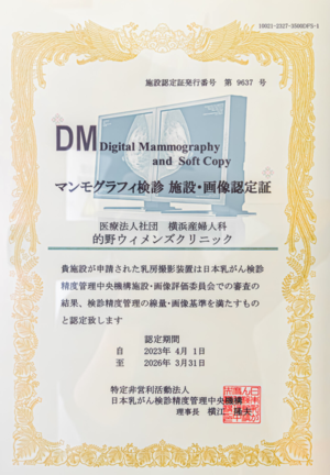 当院の院長は、長年の産婦人科専門医としての経験に加えて、マンモグラフィ読影医、乳がん検診超音波検査判定医師、乳房疾患認定医としての認定も受けております。